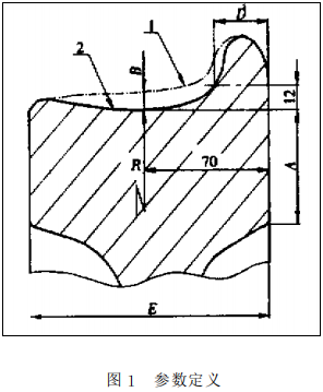 The definition of rim shape parameters is shown in Figure 1: Curve 1 represents the original contour line of the rim, while curve 2 represents one form of worn-out contour lines. The thickness of the rim is defined as A, the wear of the wheel tread is B, the diameter of the wheel is C, the thickness of the edge is D, and the width of the rim is E. Among them, the most critical factor is also the hardest to measure - the thickness of the edge D. In actual measurements, these parameters are determined by averaging three intervals of cross-sectional data.