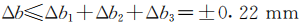 According to Equation (3), analyzing measurement error: since Xp, Yp, θ are derived from the linear arrays and photoelectric encoders, due to their high precision of 5μm, can be ignored, photoreceptor encoder precision is 3.14*10-4rad, e and a length sum is about 85mm~100mm, thus, item 4th in equation does not cause greater than 0.0314mm error; sensor installation axis-to-emitting light beam distance e and axis-to-end-face distance a are measured by calipers, measurement error is 0.01mm, gap-induced error caused by sensor installation axis is 0.05mm; machining error of the wheelset template is ±0.1mm, sensor characteristics error Δb = ±0.22mm. According to Equation (3), total measurement error of the trial is: