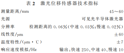 Experimental tests employed laser displacement sensors with technical specifications listed in Table 2.