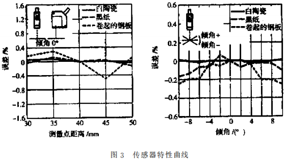 The linear characteristics of sensor output are shown in Figure 3. From the figure, it can be seen that the maximum errors caused by the local non-perpendicularity between the measured light and the tested point as well as the linearity of the sensor are respectively: