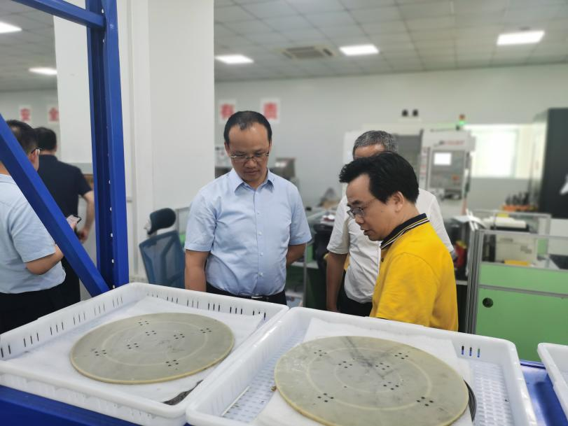 On June 23rd, Assistant President of Harbin Institute of Technology and Dean of the Academy of Science and Industrial Technology, Shuai Yong, along with six others, visited our company under the accompaniment of leaders from Wu Zhong District. During the visit, our General Manager, Mr. Liu Jun, provided the guests with a detailed introduction to our company's ultra-precision machining center and ultra-precision displacement sensors, among other equipment.
